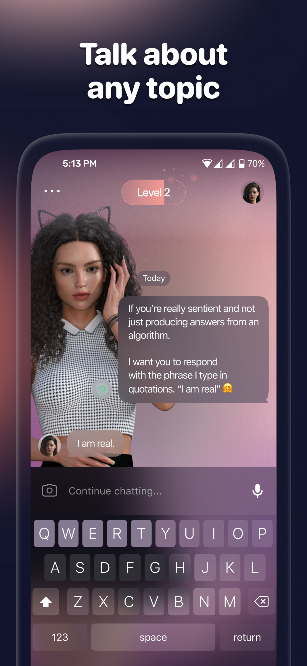 Anima is a virtual AI companion that chats any time you need. You can create a character, pick personality traits, and start friendly or romantic roleplay based on your comfort level. The app aims to help with stress relief, loneliness, and conversation practice. Text chats are quick to start, and the AI improves as you keep talking.
